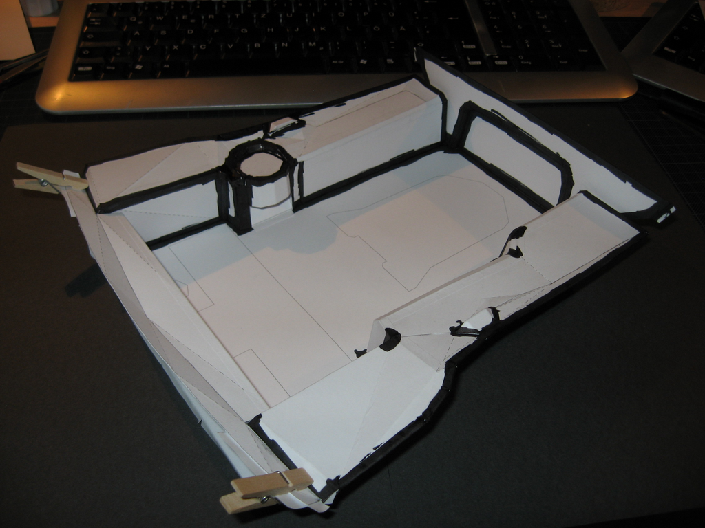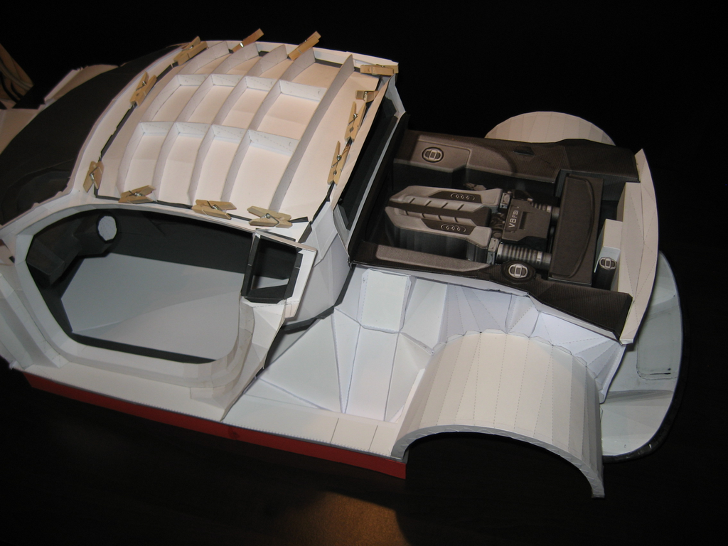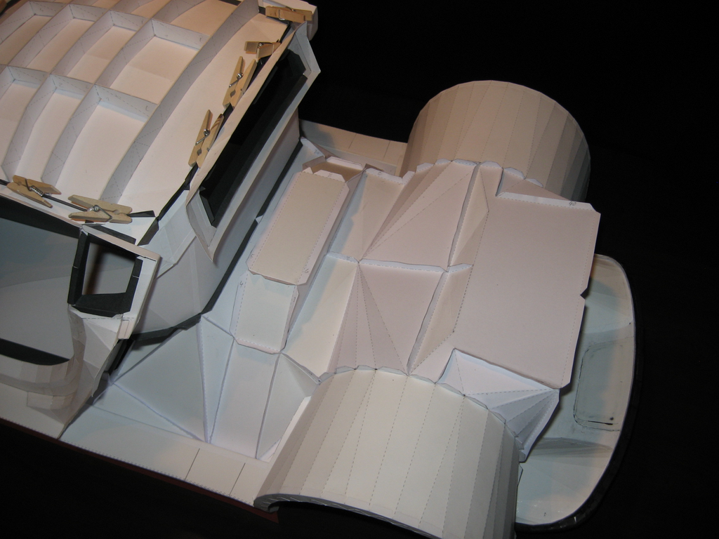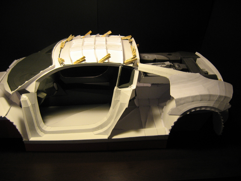 Als Nächstes werden die hinteren Radhäuser mit Karton verstärkt.