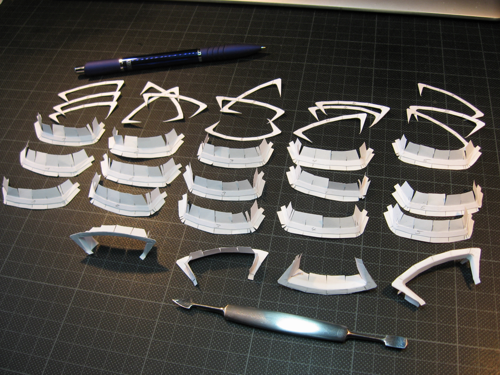 Als Nächstes fertigen wir die seitlichen Verstärkungs-Segmente zum stabilisieren der Felgensterne.